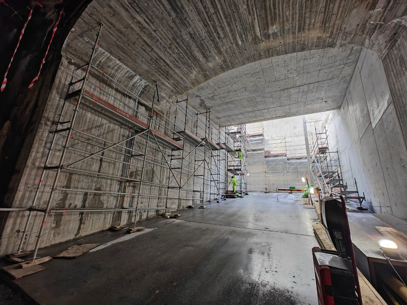 Dagligen samordnas 30–60 yrkesarbetare på tunnelsträckan, som består av två huvudtunnlar och fyra ramptunnlar.