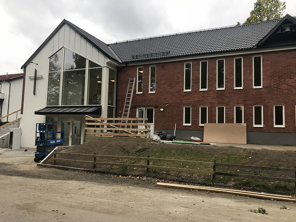 Tillbyggnad och ombyggnad av kyrkobyggnad.