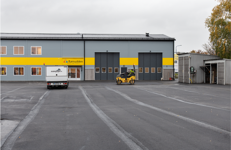 Nyproduktion av Ramuddens nya depå i Norrköping. Depån utgörs av ett stort lager, kontor, omklädningsdel samt utvändiga uppställsytor för material och utrustning.